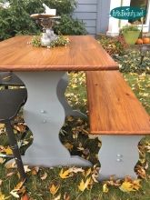 You have to check out this Farmhouse Style Table makeover with GF Antique Walnut Get Stain and a custom mix of GF Driftwood and Persian Blue Milk Paint by Art is Beauty