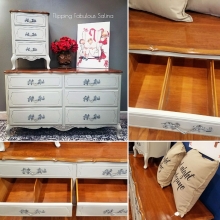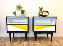 "When I was asked to transform these Mid Century nightstands I was excited and a tad bit nervous because if you follow my work, you'll know this is a first for me! I was given the freedom to come up with an original design with the only guideline...