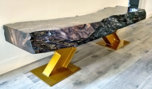 We created this wild eye popping bench using a 6" thick highly figured live edge big leaf Maple slab that we've ebonized and paired with custom i-beam chevron legs. The slab top has been finished using Seal A Cell and Arm R Seal. The i-beam...