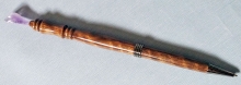 This extra long rosewood pen, set with a beautiful small piece of malachite, truly makes a statement. The grain is amazing and simply pops under the many layers of varnish that has been polished to a fine gloss with General Finishes Waterbased...
