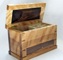 This was my first big project using dovetails and it turned out really well, especially for being built entirely with hand tools.. I found this amazing board of curly birch hiding under boring boards at Home Depot. I wanted to really highlight...