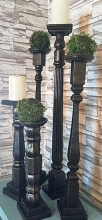 "These candlesticks are wooden, but once we painted in General Finishes-no one would ever know! They were painted with Dark Chocolate and then painted in Bronze Pearl Effects. A little dry brushing in Burnished Pearl Effects gave these candlesticks...