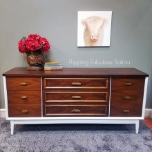 "This is a total beauty! This solid walnut mid-century dresser is in pristine condition, & will last for another 50 years easily! Stained with Antique Walnut & General Finishes Black Gel Stain, sealed with High Performance Satin." - Flipping...