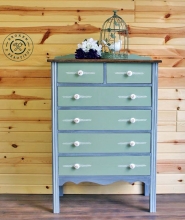 "Just finished up this pretty lady tonight. She is a vintage style farmhouse dresser made of solid wood with dovetail drawers. Her base has been refinished in General Finishes Driftwood grey, then glazed with General Finishes Winter White and then...