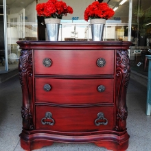 Absolutely stunning nightstand in General Finishes Holiday Red and Pitch Black Glaze Effect by Odds and Ends.