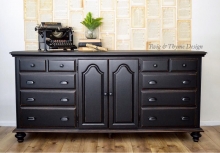 "Farmhouse style dresser painted in General Finishes Lamp Black Milk Paint and sealed with General Finishes Arm-R-Seal Top Coat. This piece is solid wood throughout. The drawers are deep so this could be used as a server/buffet in your dining room...