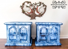 "I was reflecting on my life often feeling like being in the middle of troubled waters while painting these two end tables.These two end tables represent the calm after the storm and the deep peace we can have in our lives. General Finishes “Coastal...