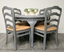 "This stunning set is done and being delivered today! Chairs for days but I finally finished with the majority of my sanity intact. General Finishes in Driftwood." - Boxwood & Brass