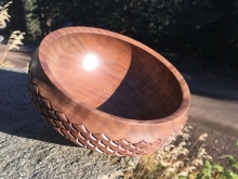 "Here is a lovely Walnut bowl I just finished up to bring with me to my demonstration in Seattle next weekend. I used the Robert Sorby Spiraling and Texturing Tool to produce this stunning herringbone pattern around the outside. Finished with...