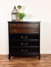 "This beauty was refinished using General Finishes Lamp Black and Medium Brown Dye Stain. Love how the dye stain highlights the natural beauty of the burl wood! Very elegant and sophisticated look!" - Painted Paradise - Antiques, Vintage, and...