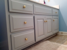 1Shabby Chic kitchen and bath painting beautified this bathroom vanity with General Finishes Seagull Gray Milk Paint.