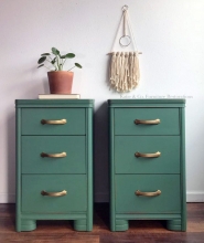 "Finished these bedside tables today. They're actually two separate pieces and not from a vanity take-apart like my usual. Art Deco is straying away from my norm but sometime I need a change up!" - Katie & Co. Furniture Restorations