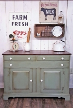"The body was brush painted with the Basil Milk Paint and then slightly distressed. Van Dyke Brown Glaze Effects were also applied to really...