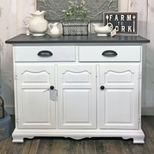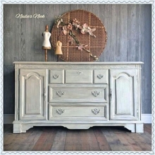 I love this piece, and I especially love that it sold in less than 24 hours. The body was painted in my favorite gray, Queenstown Gray Milk Paint, with High Performance Topcoat in Satin for the perfect shine. For added contrast I stained the...