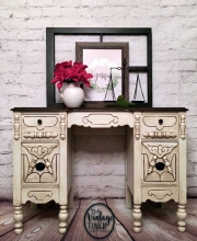 "I've been looking for a line of products to use and promote exclusively in my furniture business so I gave GF a try! I love your products!!! This is Antique White Milk Paint with Van Dyke Brown Glaze Effects, Antique Walnut Gel Stain and a satin...