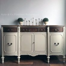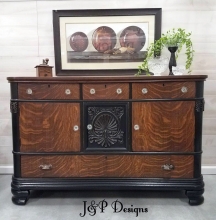 "Beautiful piece just finished using all General Finishes products. This unique sideboard, circa late 1800's is a beautiful piece of furniture! Painted in General Finishes Lamp Black, lightly distressed and top coated in a satin finish. The top,...