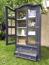 "Good evening from a sunny Ireland. I'd like to share with you my pine linen cabinet finished in Queenstown Gray Milk Paint and Winter White Glaze, highlighting the ornate detailing on the home made moulds. The interior has been lined with toile de...