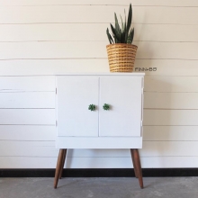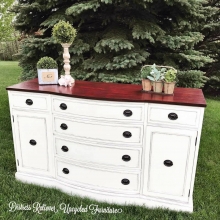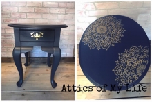 "I have had this piece waiting patiently in the back of the pile for ten months, for reasons of not knowing how the hell to restyle it. It was almost perfect to begin with. One of the sides had some major veneer damage so I knew I would paint parts...