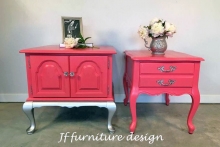 "This charming pair of end tables was given an updated look with General Finishes milk paint in Coral Crush and High Performance Top Coat in the flat finish. Love the girlie look with a little silver bling!" - JF Furniture Design