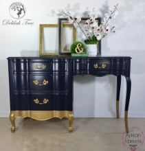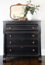 "I spruced up this Empire Dresser with General Finishes Lamp Black Milk Paint and Flat Top Coat."