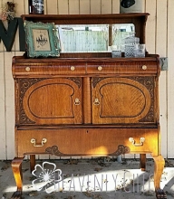 "Presenting the most amazing piece ever!!! I completely refinished this piece. Broken veneer, completely stripped and sanded!! Pre conditioned 50/50 denatured alcohol/shellac. Stained with a custom mix of Candlite Gel Stain and Brown Mahogany.