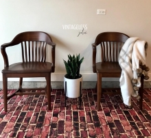 "These vintage banker's chairs needed to be refreshed. Their bones were great; the existing finish was just a little tired. The chairs were stained in General Finishes Antique Walnut Gel Stain which enhanced the wood tone beautifully." -...