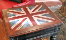"Kate transformed this old side table by painting the base with General Finishes Lamp Black (Milk Paint), then adding white wax. The top was done with General Finishes Bone White, Rembrandt Red (Chalk Style Paints) and Coastal Blue (Milk Paint),...