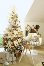 Cassie Bustamante created this magical tree with a DIY Peace Sign Tree Topper and the Peace, Love, Joy banner painted with GF Antique White Milk Paint.