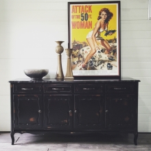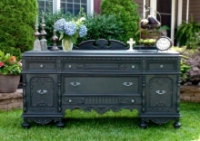 This gorgeous buffet was refinished in General Finishes Lamp Black and sealed with High Performance Top Coat in Satin. This buffet had a matching piece to it which was also finished in Lamp Black. Both stunning pieces are being used in a church...