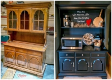 "This hutch at one time was a beautiful Ethan Allen solid maple piece some friends of mine had stored in their basement. They went on vacation and came home to 14″ of water in their basement due to their sump pump giving out. You can see the water...