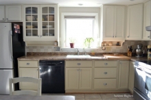 "I’m finally done with my kitchen – just in time for Thanksgiving! I had already painted the bottom cabinets in General Finishes Milk Paint in the color Millstone. I decided to paint the top cabinets in their Antique White to lighten them up and...