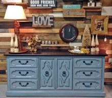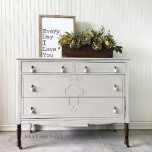Romantic Shabby Chic French Provincial Dresser highly disstressed and glazed with GF Van Dyke Brown Glaze Effects and sealed with satin High Performance Topcoat.