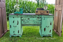 Missing drawers, layers of filth, a rotting leather top, and a rusty, pieced together sheet metal back were no match for me...