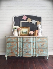 "This beautifully layered buffet was accomplished by using only General Finishes products. I created the base coat by mixing the farmhouse green color that consists of GF Milk Paint in...