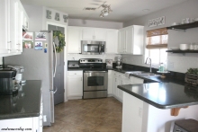 Goodbye outdated cabinets, hello fresh and modern kitchen! Andrea Worley revived this space with General Finishes Snow White Milk Paint.