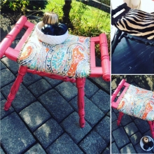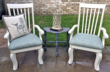 These lovely chairs were made over with General Finishes Antique White Milk Paint and the little table was restyle with GF Driftwood Milk Paint. Such a cozy little set!