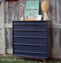 Perfect Imperfections glammed up this Mid Century Chest of Drawers with General Finishes Coastal Blue Milk Paint.