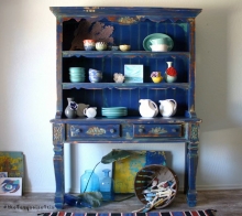We are absolutely in love with this hutch from The Turquoise Iris! It was painted with GF Klein Blue, Patina Green, Persimmon and Somerset Gold. Such a great color combo!