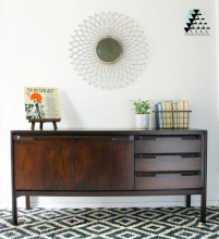 Crystal of Team Sutton Designs used GF Java Gel Stain to restore this Mid Centurey Modern Credenza.