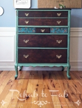 Stunning dresser refinished with General Finishes Java Gel Stain by Rusted Brown.