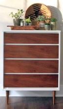 Green Spruce Designs restyled this mid century modern dresser with General Finishes Brown Mahogany Gel Stain and Snow White Milk Paint. Such a great classic look!