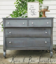 Can't get enough of this dresser painted with a custom color mix of GF Queenstown Gray and Snow White Milk Paints by Rose and Bee Furniture! It was also sealed with General Finishes water based High Performance Topcoat.