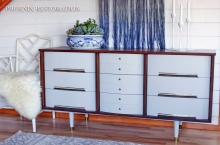 This dresser was overhauled with GF Antique Walnut Gel Stain, Seagull Gray Milk Paint and High Performance Topcoat in Gloss.