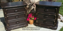 Lovely distressed nightstands refinished with General Finishes Dark Chocolate Milk Paint.