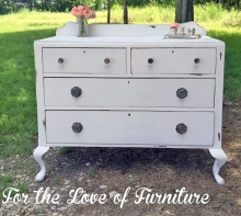 We adore this dresser painted in GF Chapin Gray Chalk Style Paint and sealed with Flat Out Flat Topcoat by For The Love of Furniture and Home Design!