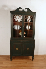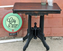 "This sweet little Eastlake table was painted in General Finishes Lamp Black Milk Paint on the base and Black Gel Stain on the top with High Performance Top Coat in Flat finish. The top was lightly distressed to highlight the wood grain."