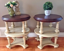 Love these side tables by Antique to Chic by Jazmin! The tops were stained with GF Java Gel Stain and the bases were sprayed with GF Millstone Milk Paint. Then the entire piece was sealed with High Performance Topcoat in satin.