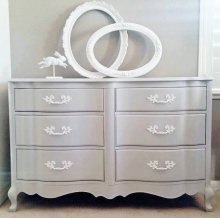 "Just finished this vintage dresser for a nursery. Painted in General Finishes Milk Paint Seagull Gray with Snow White hardware." - Vintage/Old/Loved