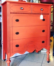 Rustic Roots went bold and bright with the GF Persimmon Milk Paint dresser! GF Van Dyke Brown Glaze Effects was applied for a little extra touch.