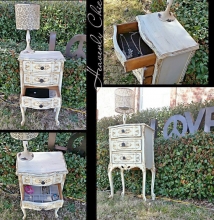 "This vintage beauty is acting as a jewelry cabinet. I refinished it in General Finish Antique White, distressed, carmel color glaze and finished with High Performance in flat. This piece has a rustic French flair and is absolutely amazing!!" -...